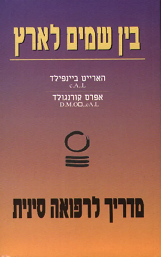 ההבטחה והמסתוריות שברפואה הסינית, סיקרנו והקסימו את אנשי התרבות המערבית מאז הורם "וילון הבמבוק" בתחילת שנות השבעים.בספר בין שמים לארץ מסירים הארייט ביינפילד ואפרם קורנגולד את מעטה הסודיות מעל גישה עתיקת יומין זו לנושא הבריאות.מובאים כאן הסברים על הפילוסופיה, שמאחורי הרפואה הסינית, כיצד היא פועלת ומה יש בכוחה לעשות.הספר משלב בין מסורות מזרחיות לבין התבונה המערבית. זהו מדריך מקיף וברור לשיטה עתיקה זו, הפונה לשלושה תחומים ברפואה הסינית - תאוריה, סוגים וריפוי.תאוריה - הסבר העקרונות הבסיסיים של הרפואה הסינית המסורתית.סוגים - מיזוג ההשקפות המזרחיות על התהליך האנושי עם הפסיכולוגיה המערבית, והצגת הדגם המקורי של המחברים.ריפוי - הסבר שיטות הטיפול של דיקור, ריפוי באמצעות צמחי מרפא וריפוי תזונתי - מהם וכיצד להשתמש בהם.בין שמים לארץ פותח דלת לאוצר רחב של ידע, המגשר על הפער בין הנפש לגוף, בין תאוריה למעשה, בין פיקוח מקצועי לטיפול עצמו, בין מזרח למערב.הארייט ביינפילד ואפרם קורנגולד היו בין האמריקנים הראשונים, שהוכשרו במכללה לאקופונקטורה באנגליה והוסמכו בקליפורניה.